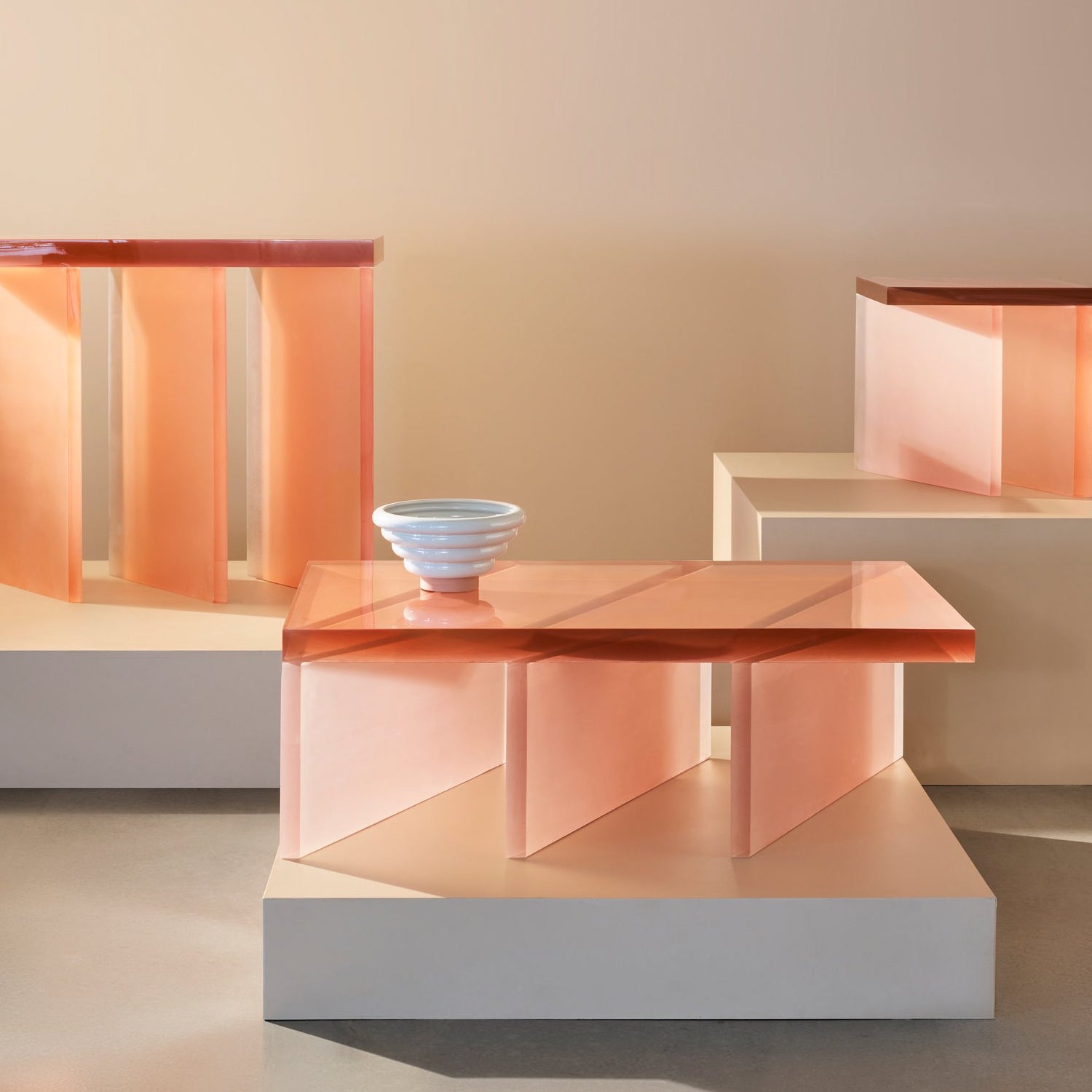 A blend of delicate craftsmanship and lineal minimalism, it’s the distinct materiality of resin that plays the leading role in shape, opacity and colour selection in the Refract collection’s design. With a hand feel of stone and a visual likeness to glass, the internal catalyst textures of resin allow light to shift and refract - like sun through seawater. The stacked lineal shapes that form the table bases take design cues from a wave set. The slabs each glowing at the tip and deepening in colour as each prism expands.